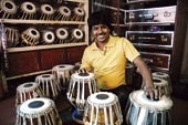 Mukta understands that akin to the quality of workmanship is the quality of materials. He chooses camel hide straps and obtains his goat hides directly from the Kalighat temple, a most holy site for all Hindu's. At this point Mukta is well established as one of the best Tabla makers of India, if not the world. Mukta now exports instruments across the globe to the UK, the USA, Canada, Japan, and other various countries in South America, Africa, and Europe. He faithfully supplies tablas for great tabla masters such as Pandit Krishan Maharaj, Pandit Shankar Ghosh, Pandit Swapan Chowdhury, Ustad Zakir Hussain, Pandit Annindo Chatterjee, Pandit Kumar Bose, Pandit Samar Saha, Pandit Shures Tawalkar, and Pandit Bickram Ghosh. Mukta also provides continuous support for Indian as well international students worldwide. Mukta is happily married as of 2001. In 2003 he became the proud father of his daughter "kiti." |