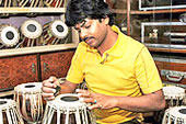 Mukta Das was born into a family lineage of 11 generations of tabla makers. His Father's Grandfather, the great master Surandrnhath Das had previously set the level. Mukta worked in his father's shop with his two elder and three younger brothers, as well his sister's children in their home village of Ranaghat Nadiya. In 1986 Mukta made a big decision and moved to Kolkata to begin Talim (training) under the great Tabla making Guru Nariyan Das. After fifteen years of dedicated work in Nariayan Das's tabla shop, Mukta began thinking that one day he could have his very own shop. In Behala Sholshoena, the Behala district of Kolkata "Rhythm" came to be Mukta's first shop. It was there that Mukta made some major strides in developing his quality. He also obtained a world wide export license in 1999. " Rhythm " then flourished. One Year later Mukta supplied The I.T.C Sangeet Research Academy with all new instruments and built a new and bigger shop in the Tollygunge area of south Kolkata. |