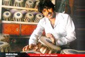 Mukta understands that akin to the quality of workmanship is the quality of materials. He chooses camel hide straps and obtains his goat hides directly from the Kalighat temple, a most holy site for all Hindu's. At this point Mukta is well established as one of the best Tabla makers of India, if not the world. Mukta now exports instruments across the globe to the UK, the USA, Canada, Japan, and other various countries in South America, Africa, and Europe. He faithfully supplies tablas for great tabla masters such as Pandit Krishan Maharaj, Pandit Shankar Ghosh, Pandit Swapan Chowdhury, Ustad Zakir Hussain, Pandit Annindo Chatterjee, Pandit Kumar Bose, Pandit Samar Saha, Pandit Shures Tawalkar, and Pandit Bickram Ghosh. Mukta also provides continuous support for Indian as well international students worldwide. Mukta is happily married as of 2001. In 2003 he became the proud father of his daughter "kiti." |